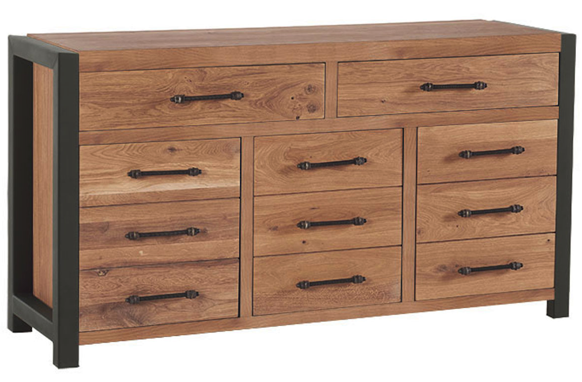 Alliant le chêne et le métal ce bahut de 3 portes et 2 tiroirs sur rail a ouverture totale en chêne huilé saura vous séduire.