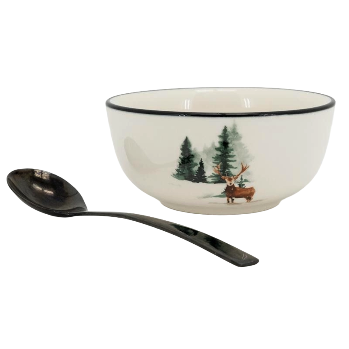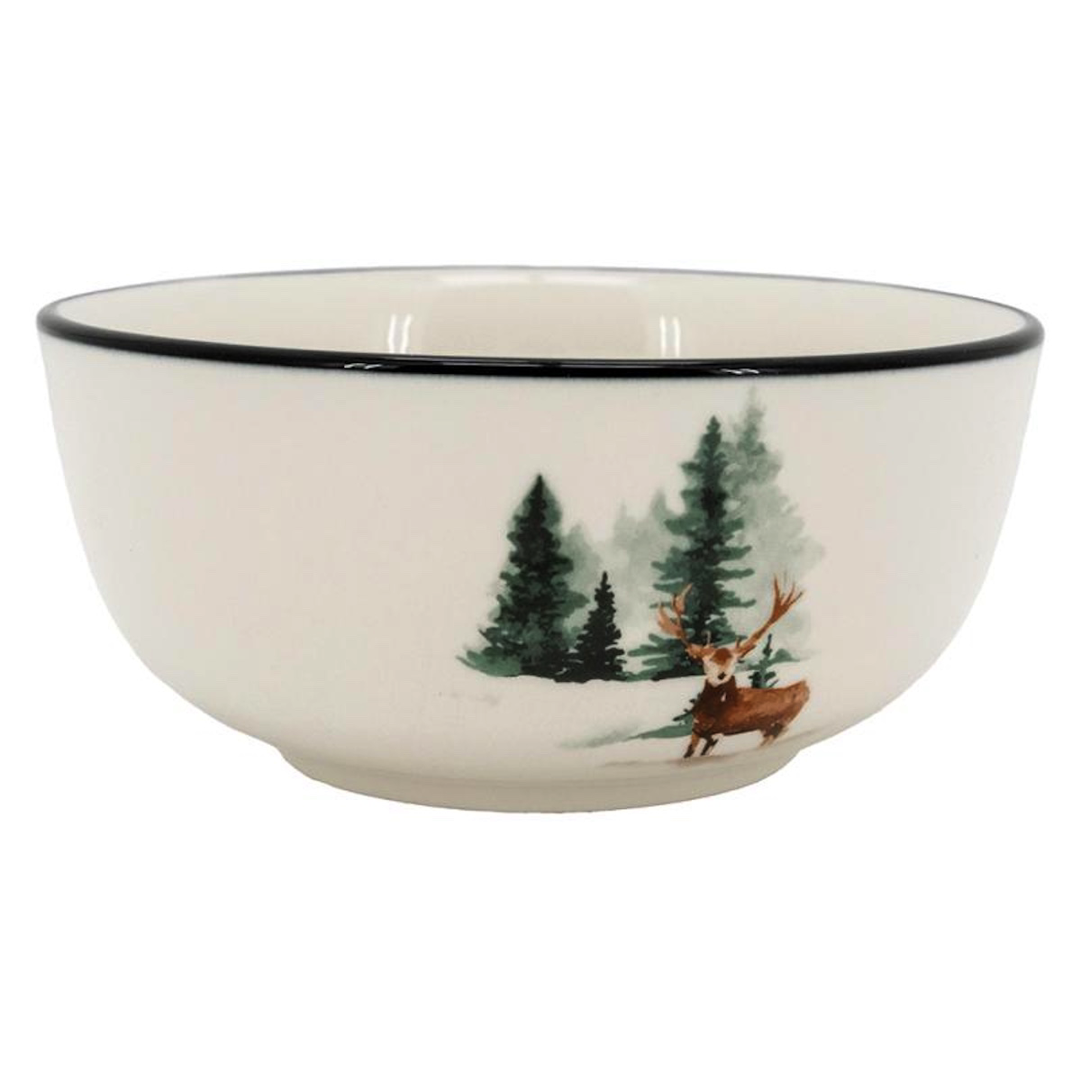 Laissez-vous charmer par ce bol en porcelaine qui capture toute la magie des forêts d'hiver. Orné d'une scène délicate représentant un cerf majestueux évoluant parmi les sapins enneigés, ce bol apporte une touche poétique et raffinée à vos moments de pause.