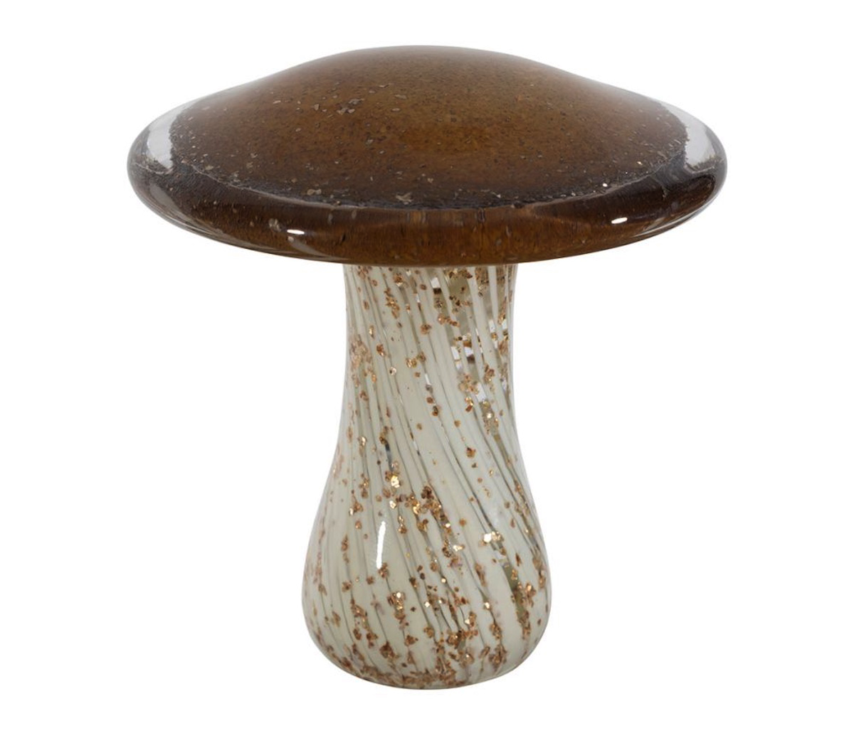 Ajoutez une note originale et élégante à votre décoration avec le champignon Bolet en verre ambre et doré. Sa silhouette délicate et ses reflets lumineux en font un objet raffiné qui attire le regard.