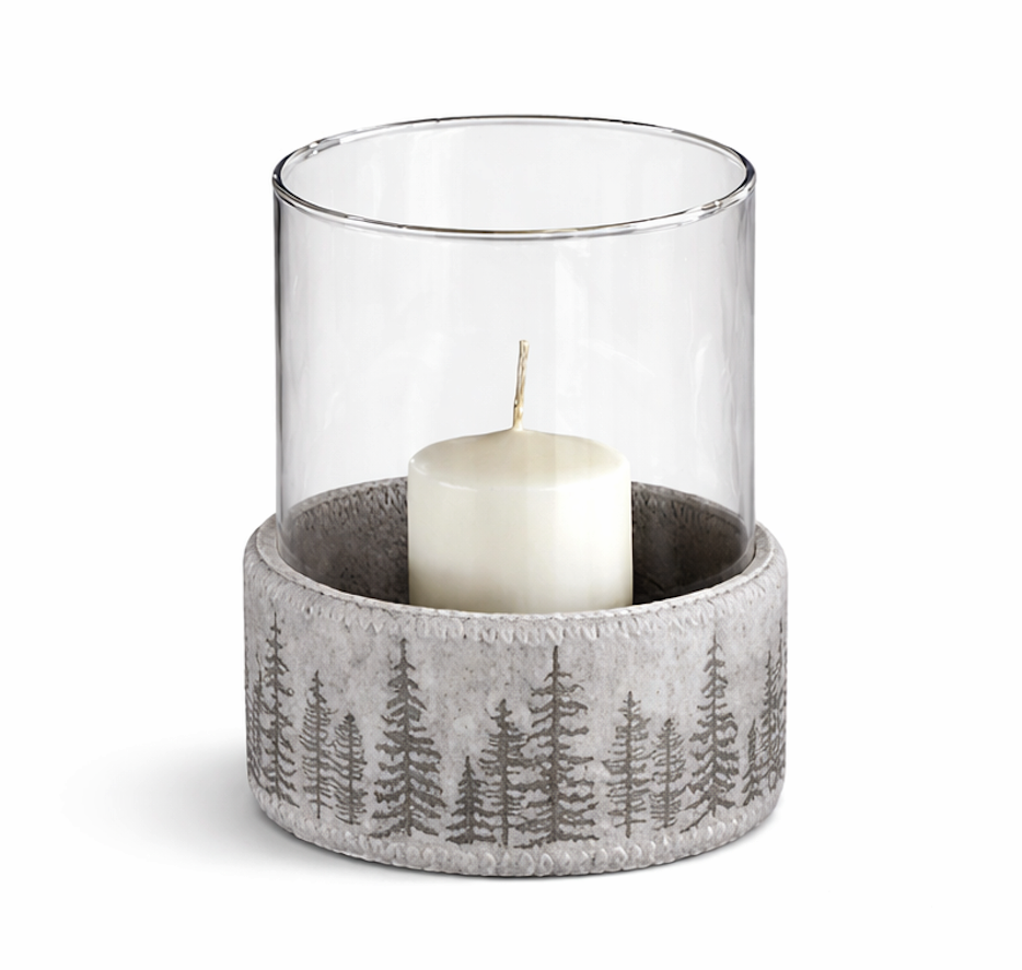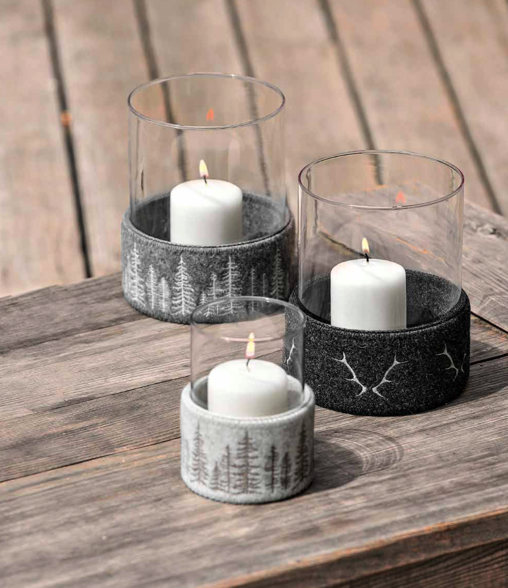 Entouré de feutre de laine naturelle beige ornée de sapins, il apportera une discrète touche chic et distinguée.