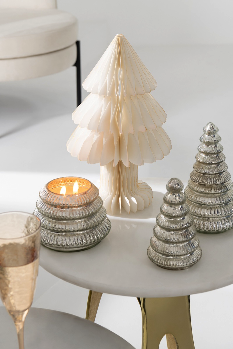 Cette bougie parfumée en verre côtelé, inspirée de la silhouette d’un sapin, séduit par son design élégant et son esprit festif.