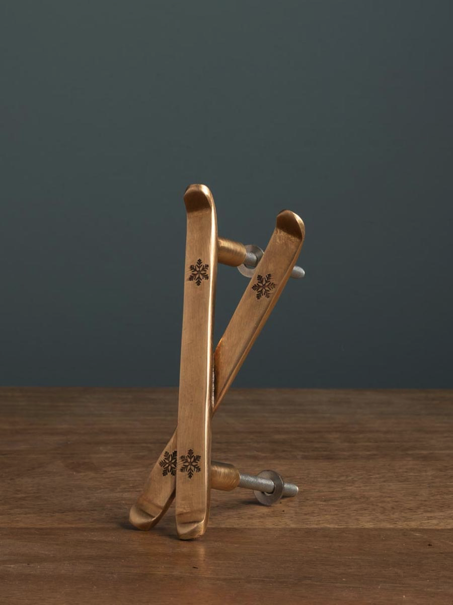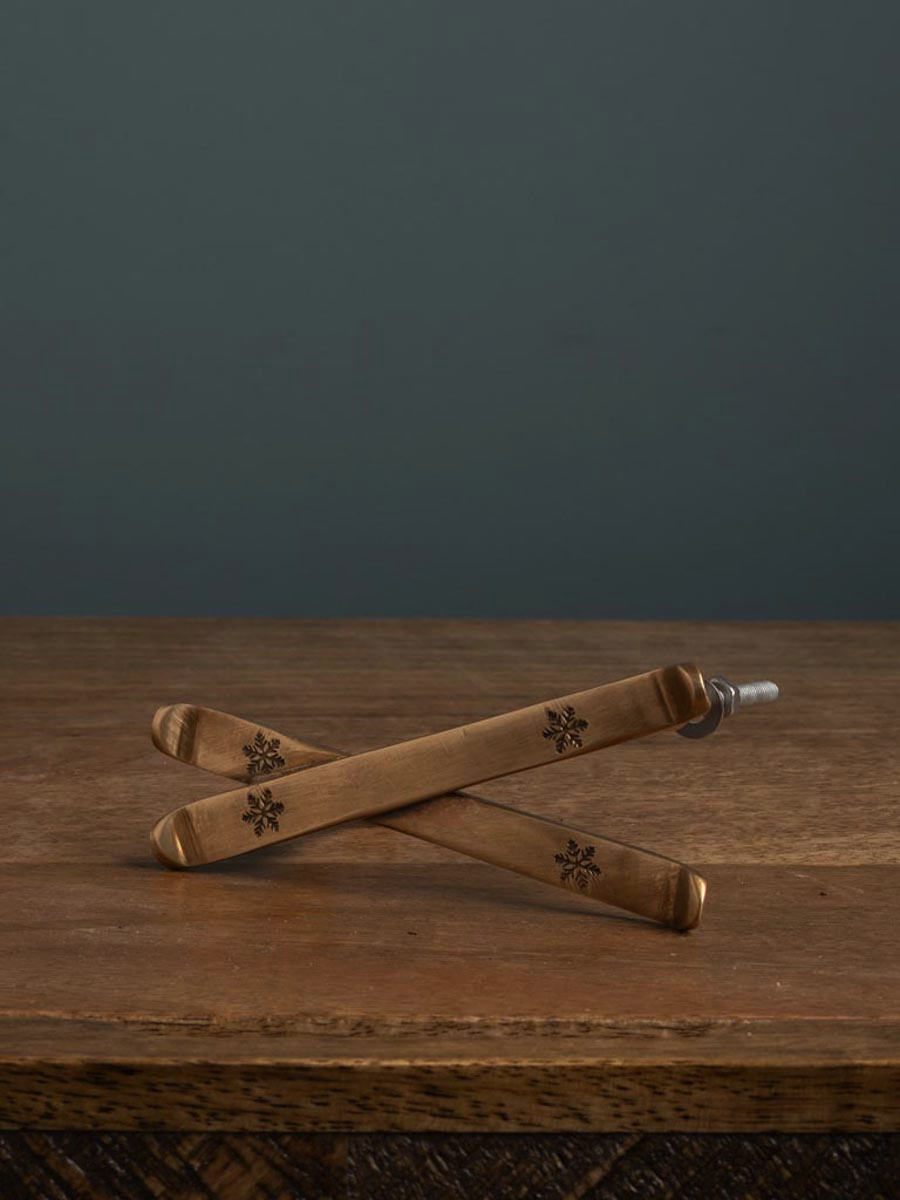 Ce bouton de porte au design unique s'inspire de l'univers hivernal, avec une paire de skis minutieusement sculptée flocon de neige en laiton patiné.