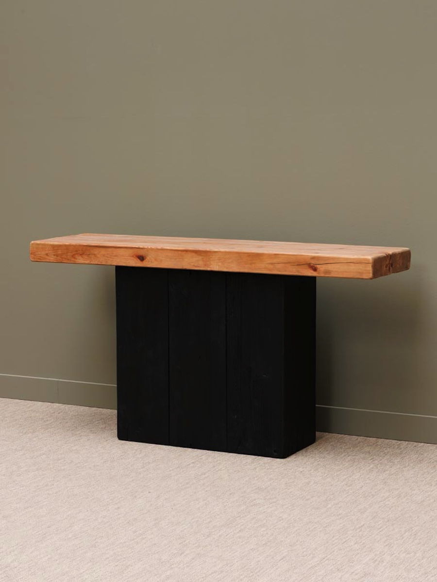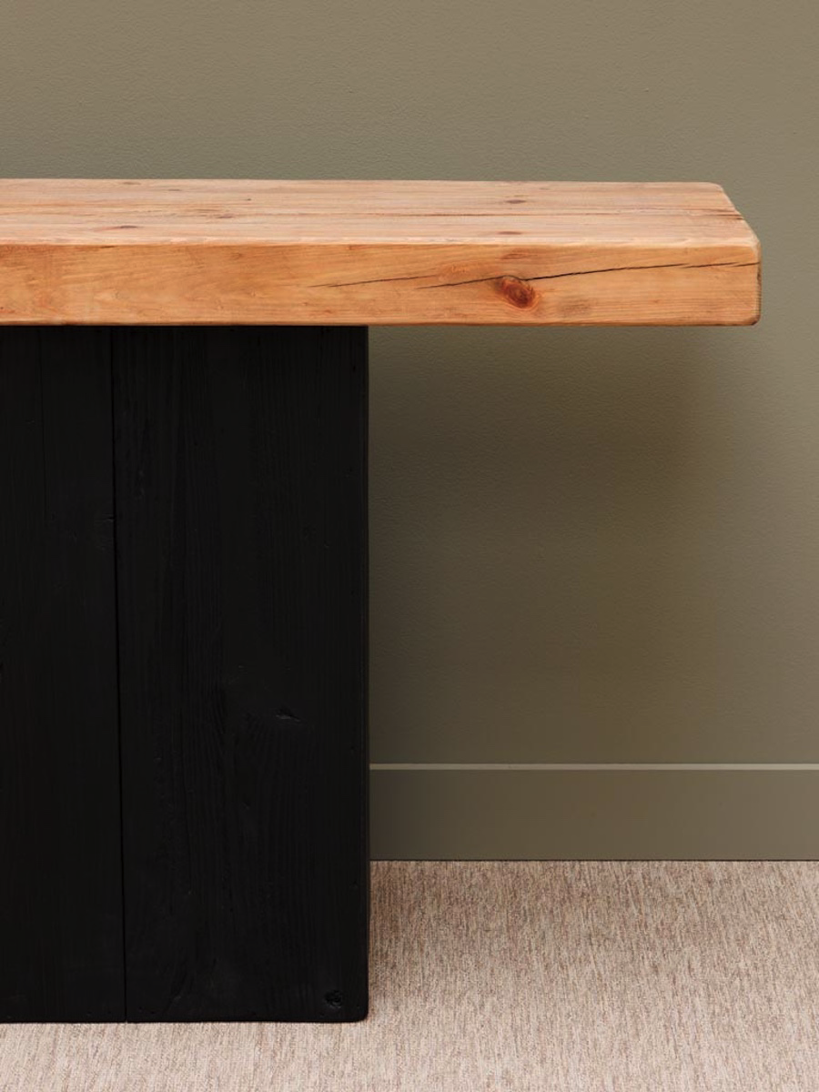- Chaque console est unique grâce à l'utilisation de pin recyclé. Les variations naturelles du bois, ses nœuds et ses nuances témoignent de son histoire et apportent une dimension écologique et authentique à votre décoration.