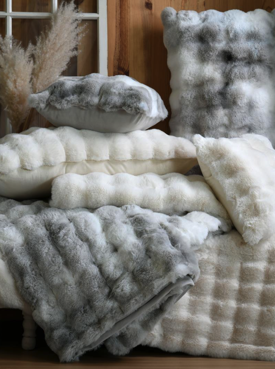 Avec sa sublime teinte perle en fausse fourrure, il se fond à merveille dans votre décoration, qu'elle soit moderne ou empreinte de charme montagnard. Imaginez-le sur votre canapé clair ou drapé sur une chaise longue, ajoutant une touche de luxe à votre intérieur.