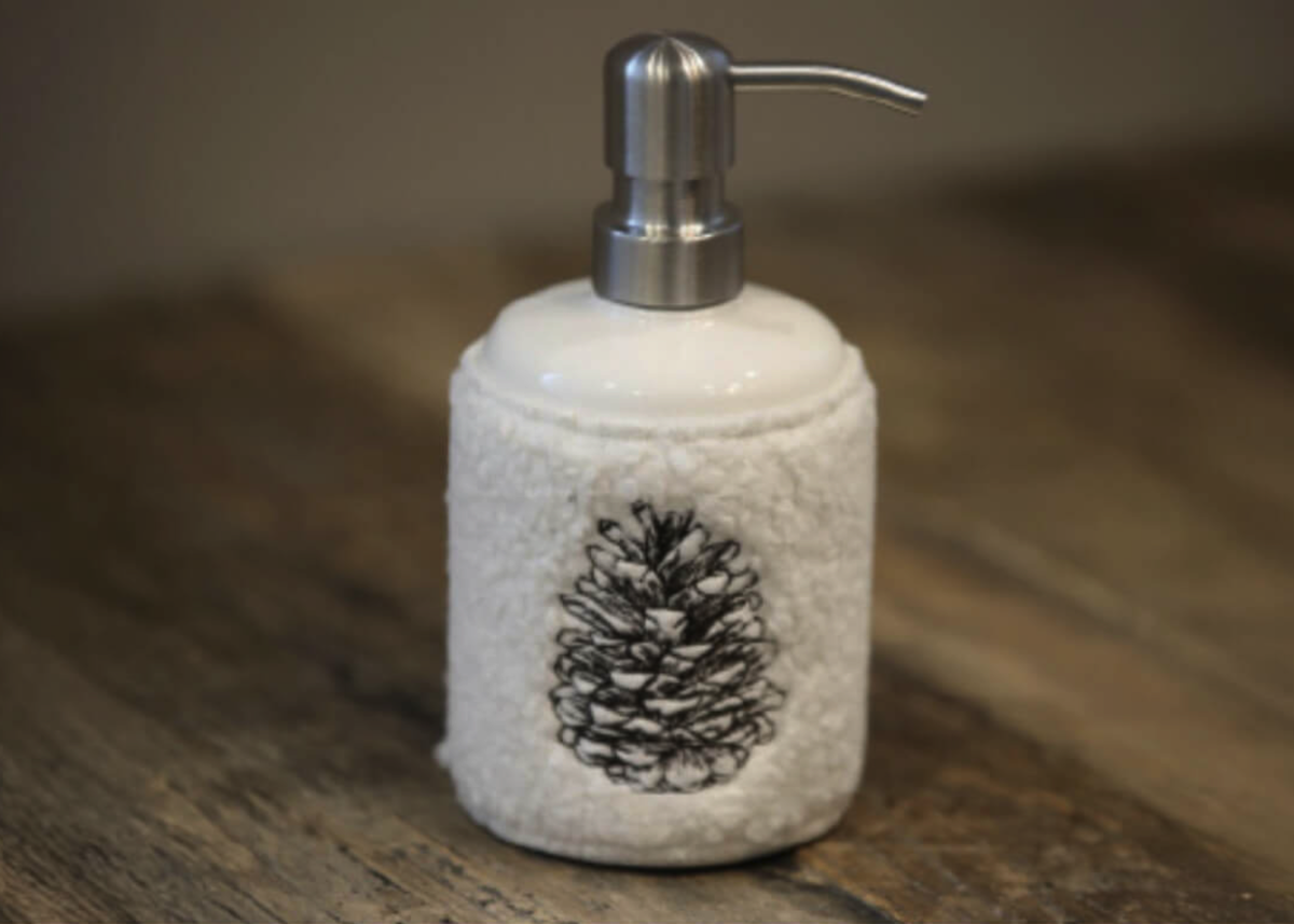 Ce distributeur est facile à assortir avec les autres articles de la collection Bouclette Pomme de pin.