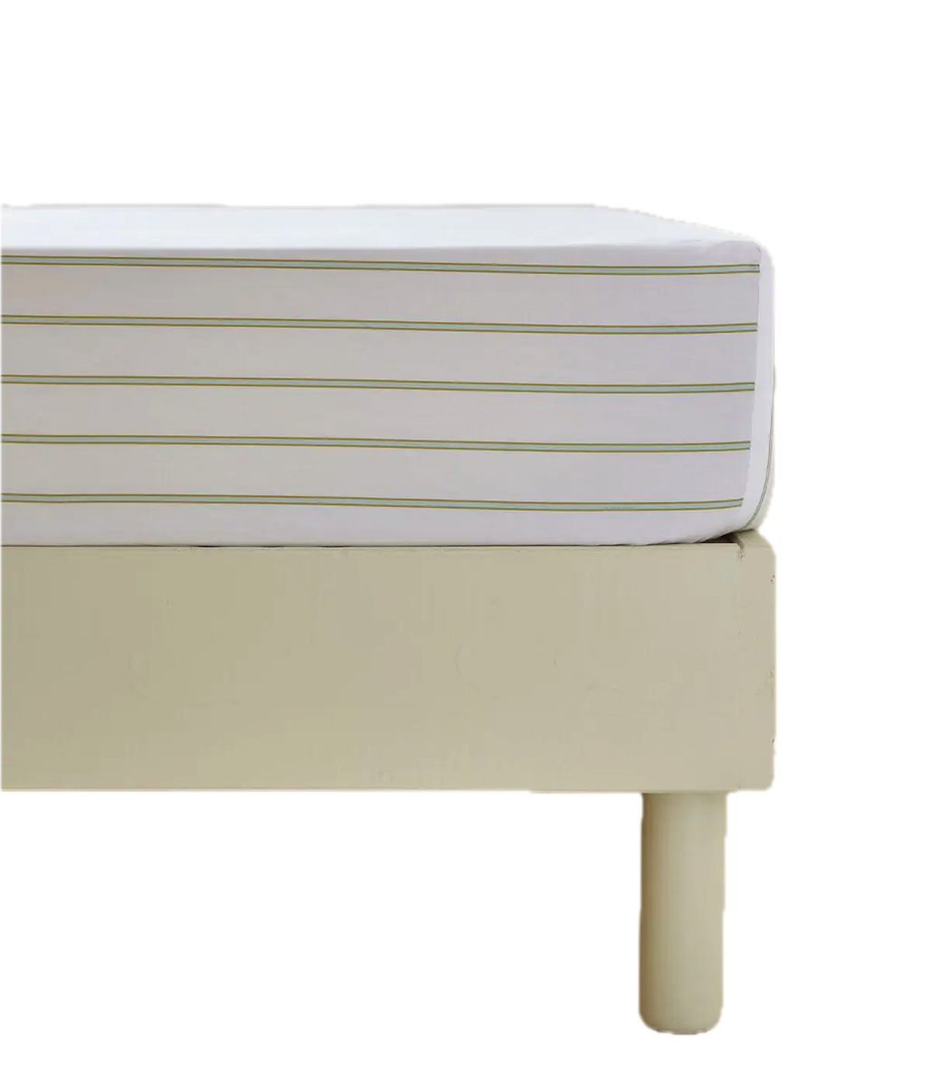 Ce drap housse décoré d'une fine rayure au style classique reprend les couleurs de la broderie présente sur la parure de lit. Il insufflera à votre chambre un style délicat et contemporain.