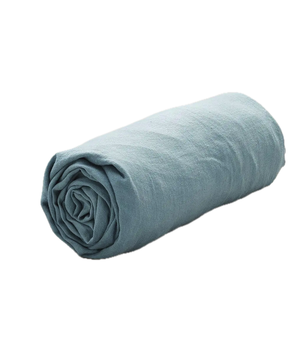 Drap Housse lin stone washed Bleu cap - Sylvie Thiriez