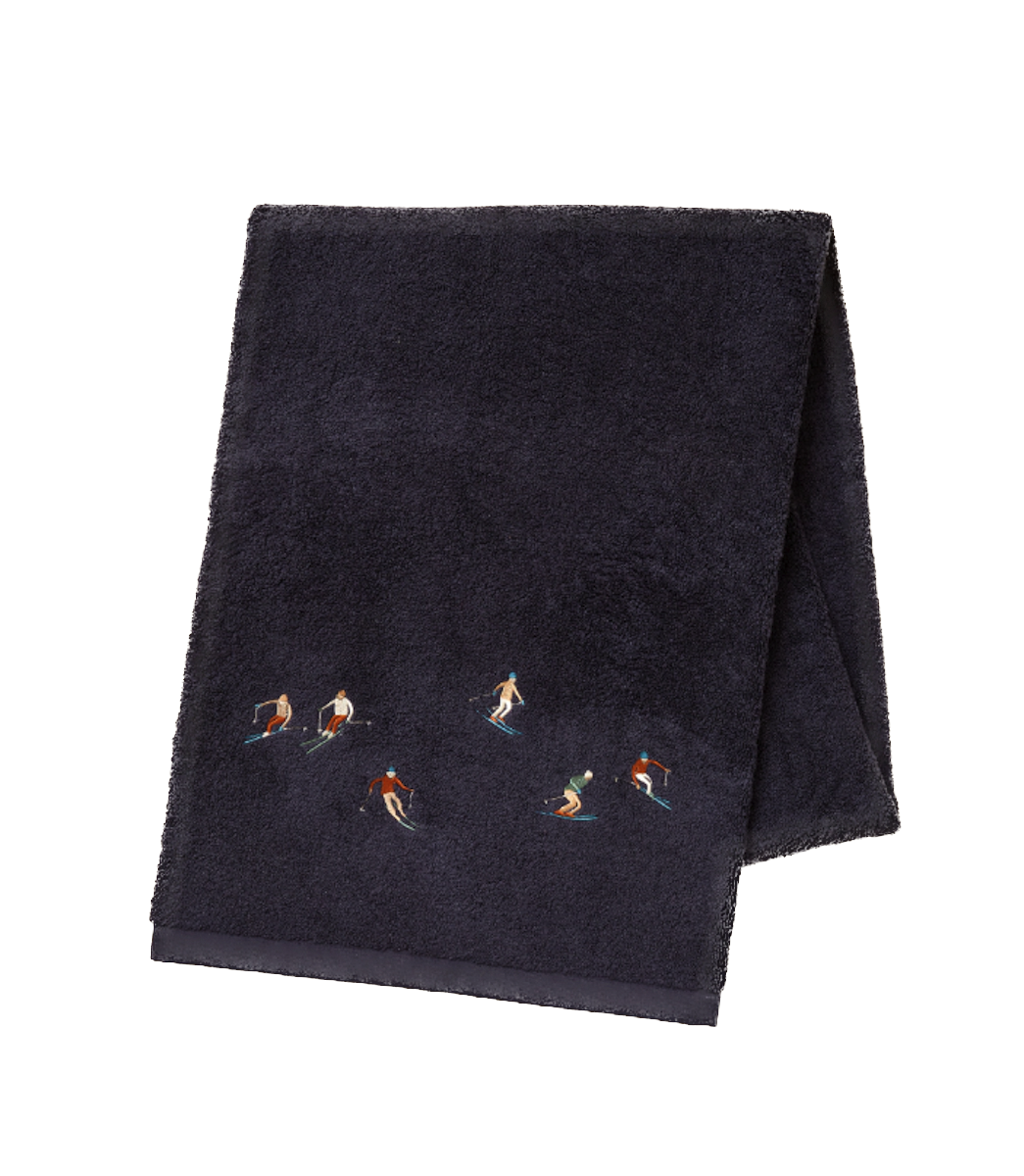 Sur les pistes, les skieurs glissent tandis que les coups de pinceaux les esquissent rapidement pour capturer leurs postures dynamiques. Ce linge de bain audacieux et moderne apportera une touche unique à votre salle de bain.