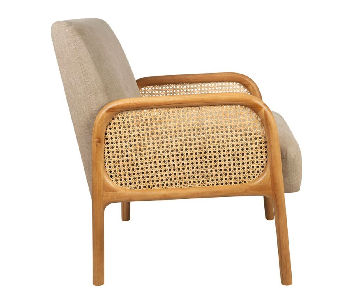 Le fauteuil Firmin en beige et naturel est une pièce maîtresse qui apporte élégance et confort à votre intérieur. Imaginez-le dans un salon lumineux, où son allure douce et accueillante invite à la détente.