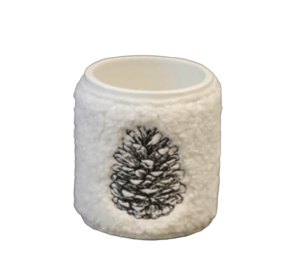 Le Gobelet Bouclette Pomme de pin de la marque Catia Luca est une pièce d’exception qui allie design naturel et confort sensoriel. Conçu pour évoquer la chaleur d’un intérieur cocooning, il marie la solidité de la céramique à la douceur d’une texture bouclette inspirée des paysages hivernaux.