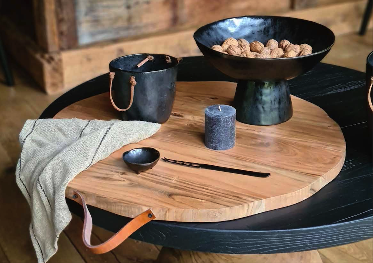 La planche à découper grand modèle de la collection Marthe par Angel des Montagnes, sera non seulement un objet utile au quotidien, mais pourra également servir de plateau décoratif à disposer dans votre cuisine.