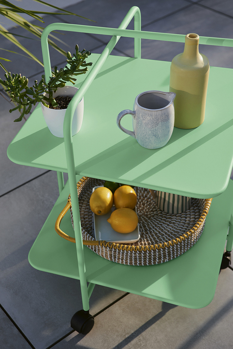 Décliné dans les 22 couleurs du nuancier Fermob, il saura se faire discret et en même temps relever toutes vos décos, comme le majordome de rêve qu’il aspire à être. Découvrez aussi les autres guéridons et serviteurs Fermob