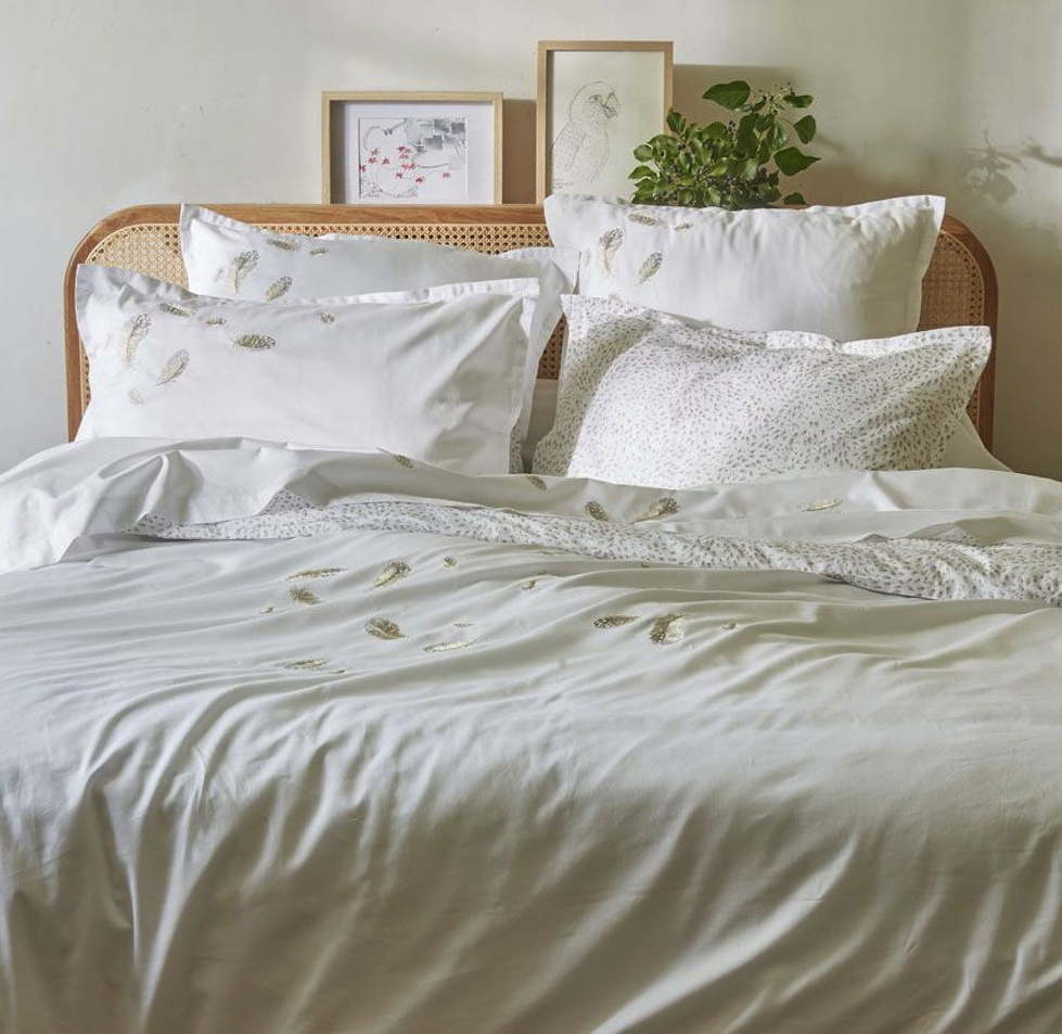 Complétez votre collection avec : les taies d'oreiller brodées, la taie de traversin unie, la housse de couette brodée, le drap brodé et le drap-housse imprimé.