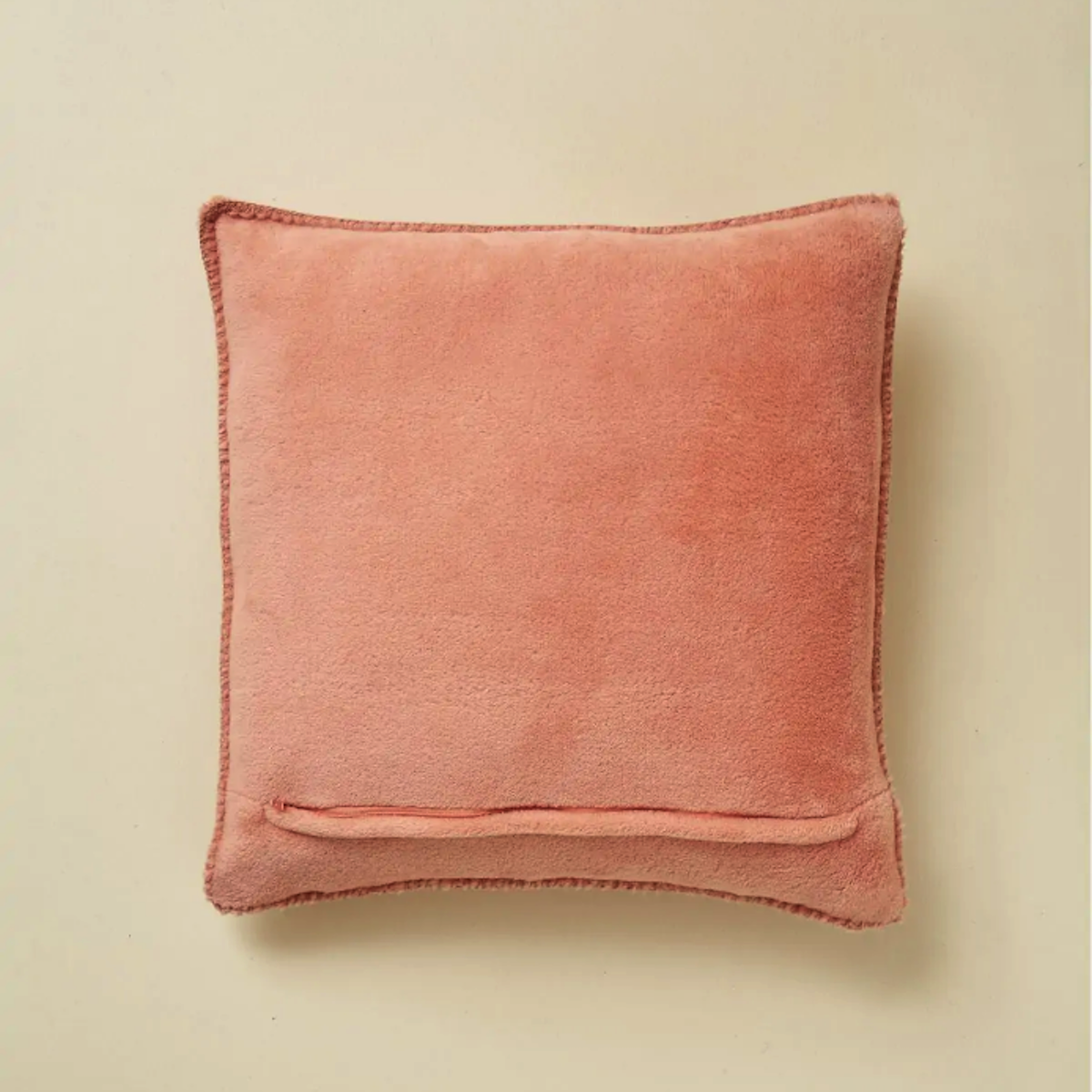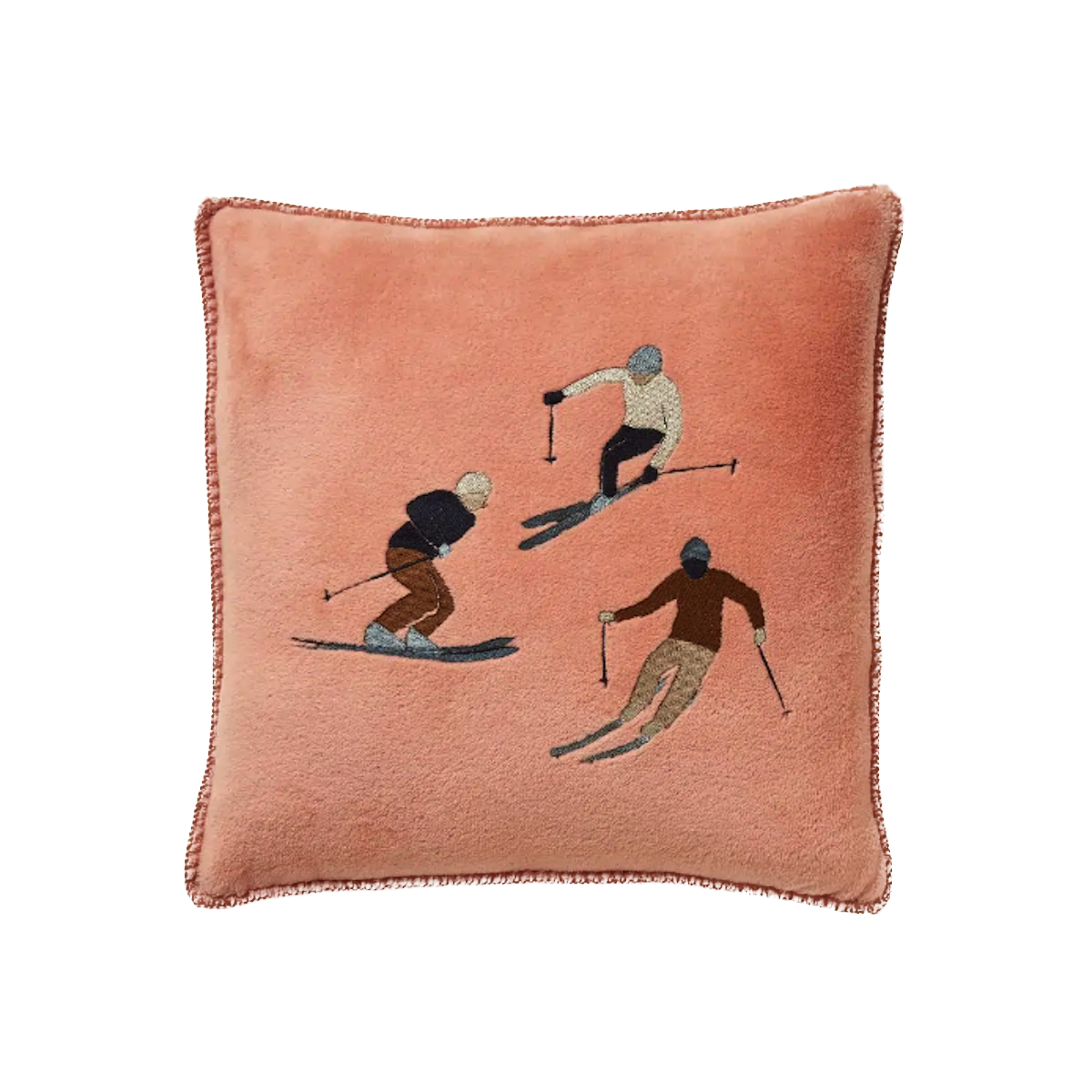 Housse de coussin polaire brodée Apres-ski rose thé - 45x45 - Sylvie Thiriez