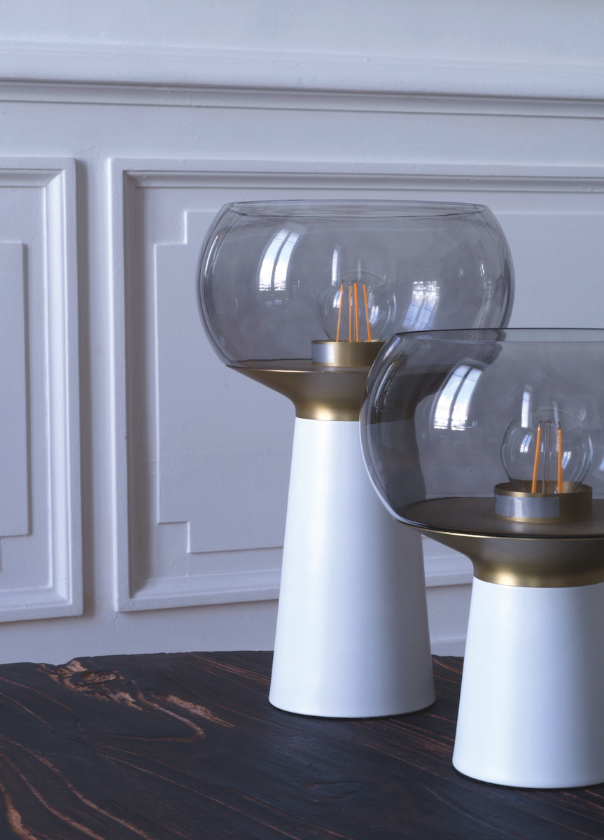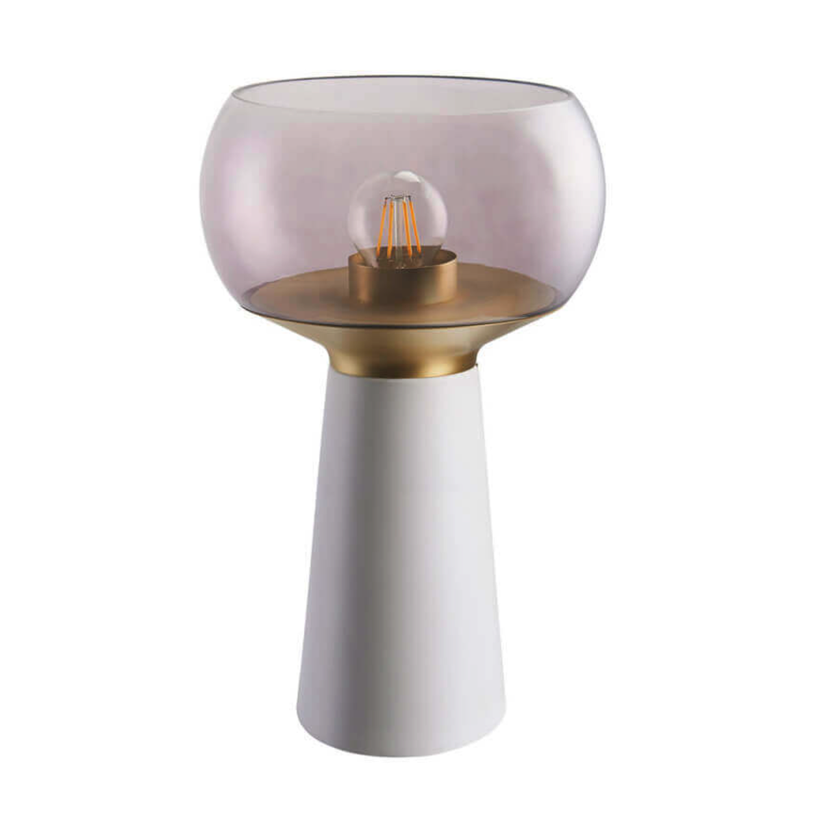 Son pied en métal blanc, la touche de doré à la base de l’abat-jour en verre délicat, en fait un objet de décoration unique et sophistiqué.