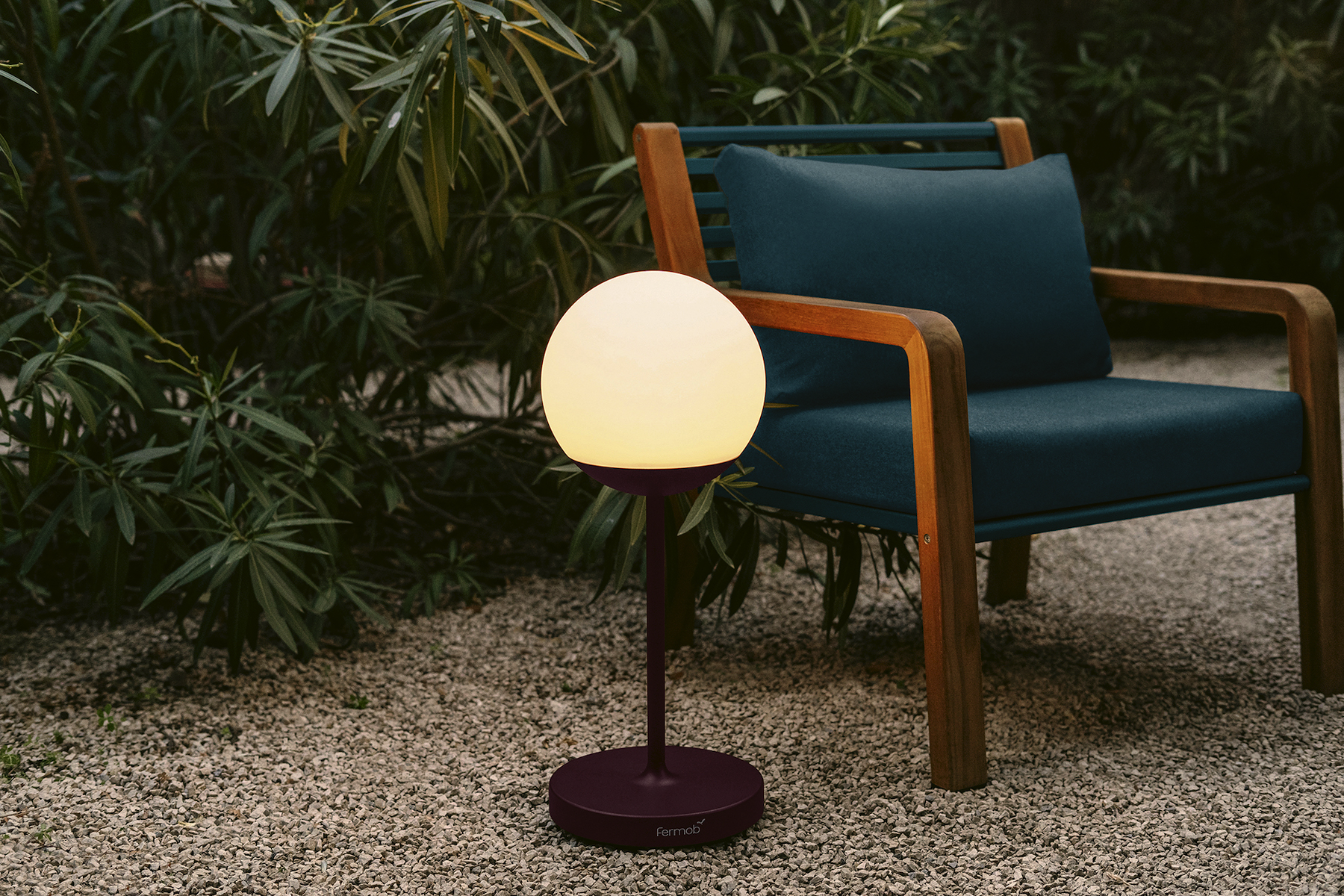 Avec les luminaires Fermob, personnalisez votre ambiance lumineuse au fil des heures de la journée et de la nuit, et au gré de vos envies. Vous êtes plutôt « blanc chaud » ou « blanc froid » ? Pas de problème, toutes les lampes Fermob proposent les 2 ! Qui dit lampe d’extérieur dit étanchéité (IP44) et résistance aux chocs (IK10). Et qui dit lampe nomade, dit légèreté ! Une légèreté conférée par sa structure aluminium & son diffuseur en polyéthylène.