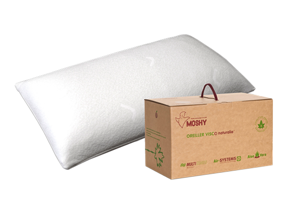 L'oreiller Naturalia Premium de la marque Moshy (spécialiste de l'accessoire literie) s'adapte à toutes les morphologies comme tout bon oreiller à mémoire de forme, seulement celui-ci est fait de mousse à base d'huile de ricin et est garnis de microcapsules d'huiles essentielles d'aloe vera favorisant la qualité du sommeil .