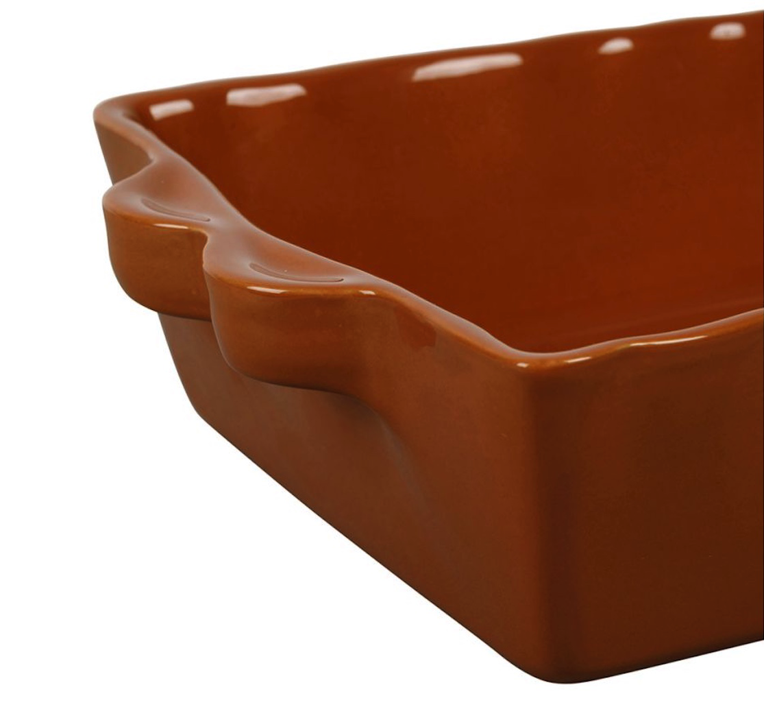 Sa teinte caramel douce se marie harmonieusement avec une multitude de vaisselles élégantes ou rustiques, ajoutant une note chaleureuse à votre décoration. Non seulement esthétique, ce plat est également fonctionnel grâce à sa capacité à accueillir aussi bien vos plats mijotés que vos desserts. Le détail en feston souligne son élégance naturelle, faisant de chaque repas un moment particulier à savourer.