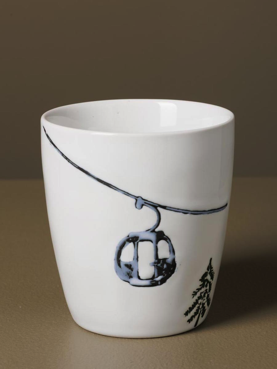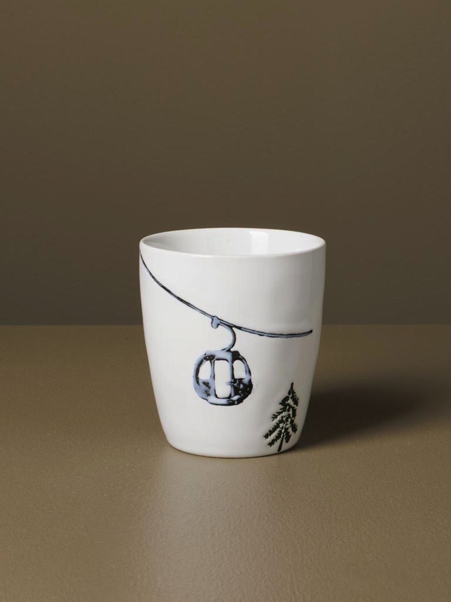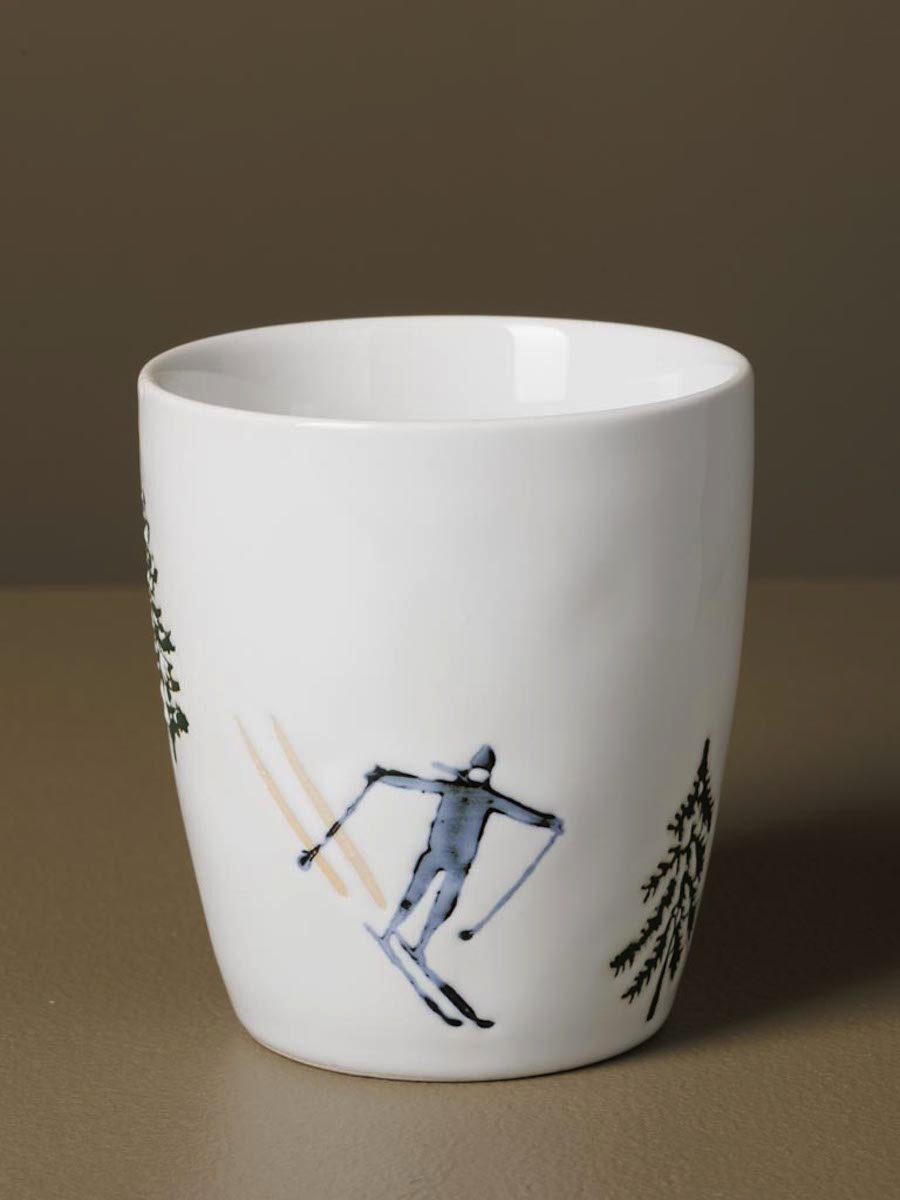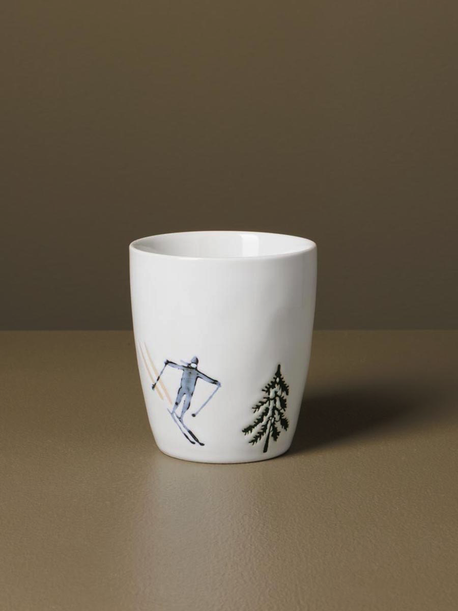 Ornés de motifs en relief représentant des skieurs en pleine descente évoluant parmi les sapins enneigés, ces mugs apportent une touche dynamique et authentique à vos pauses.
