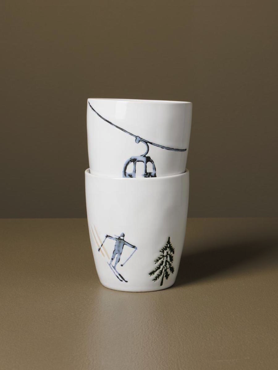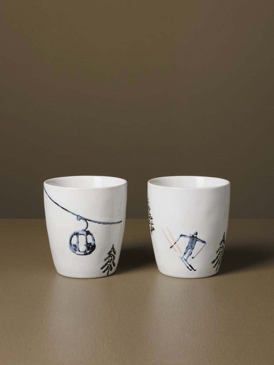 Savourez votre café dans ce set de deux tasses en grès qui célèbrent la passion des sports d'hiver.