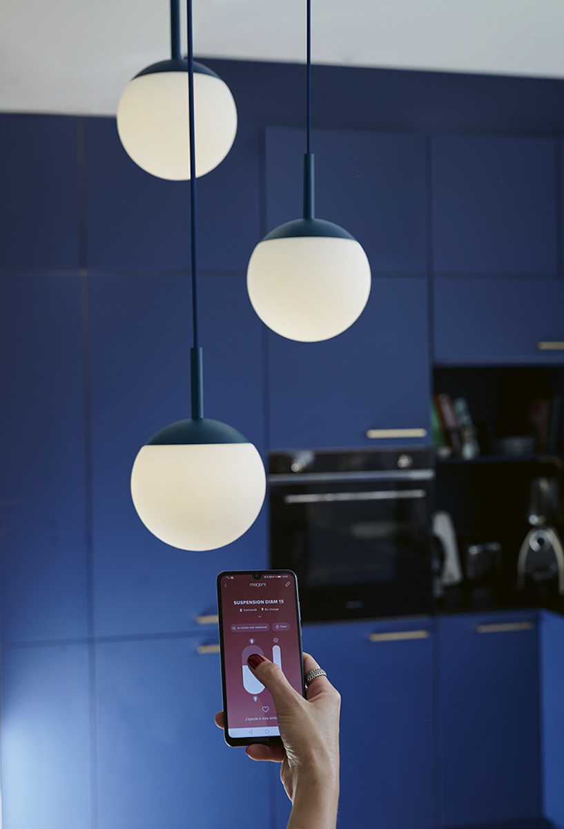 Changer la température d'éclairage (de 6000°K à 3000°K), varier l’intensité (de 10 à 100%) pour créer une atmosphère tamisée, éteindre l'ensemble de vos luminaires professionnels simultanément : autant de possibilités qu'offrent l'application Fermob Lighting ou l'interrupteur connecté Ludo !