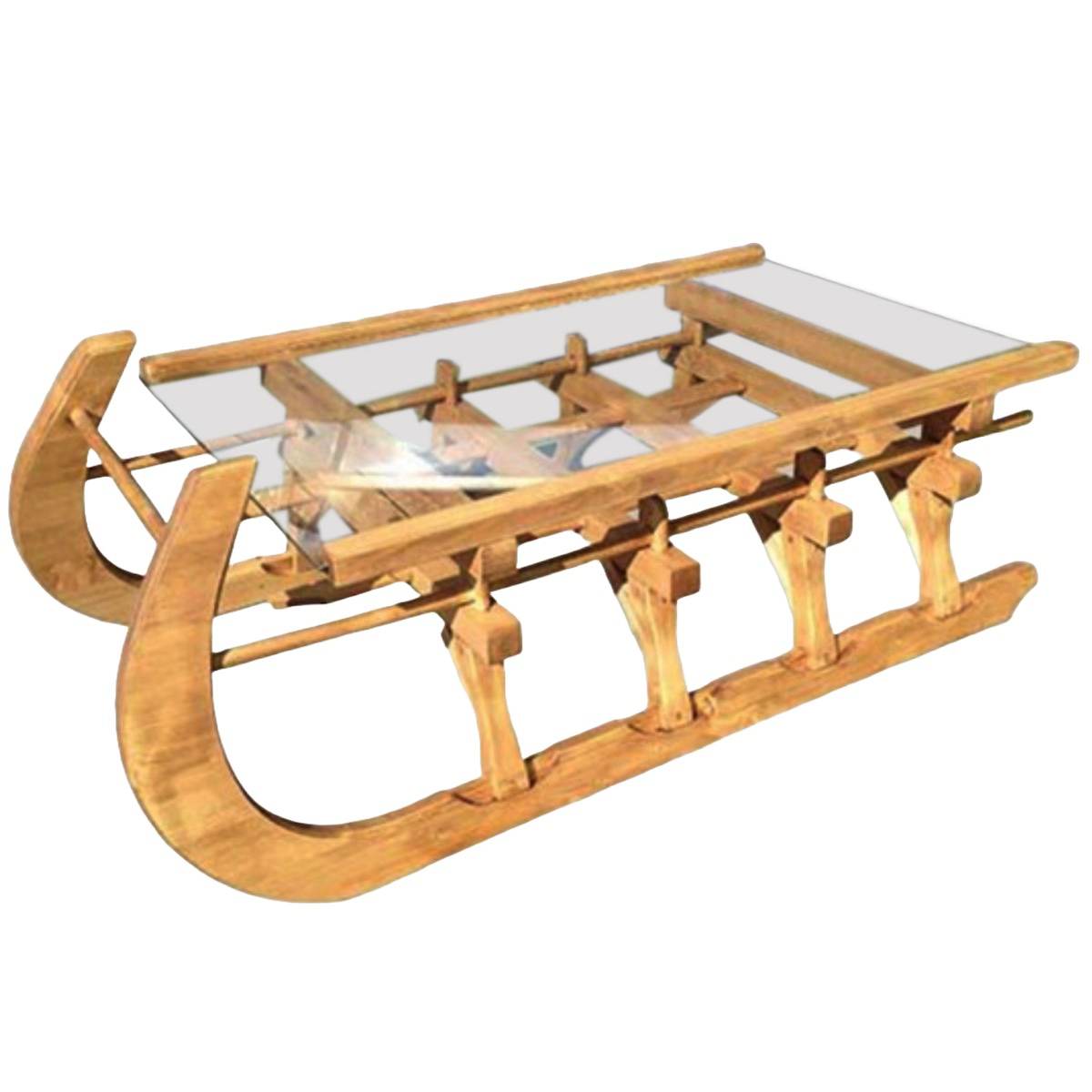 Table basse luge en sapin ciré plateau verre collection cosymaison