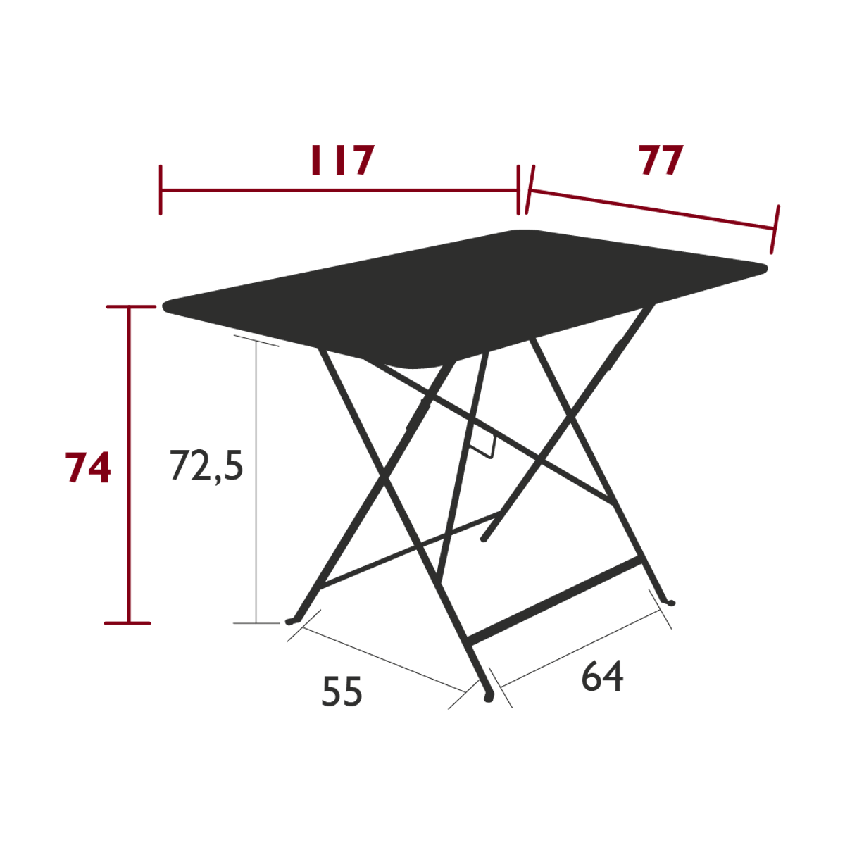 Très pratique, pliante et pouvant accueillir 6 personnes, 117x77 cm elle est munie d’un trou pour le parasol au centre du plateau. Elle est proposée dans une multitude de couleurs qui offrent autant de possibilités de créer son propre décor.