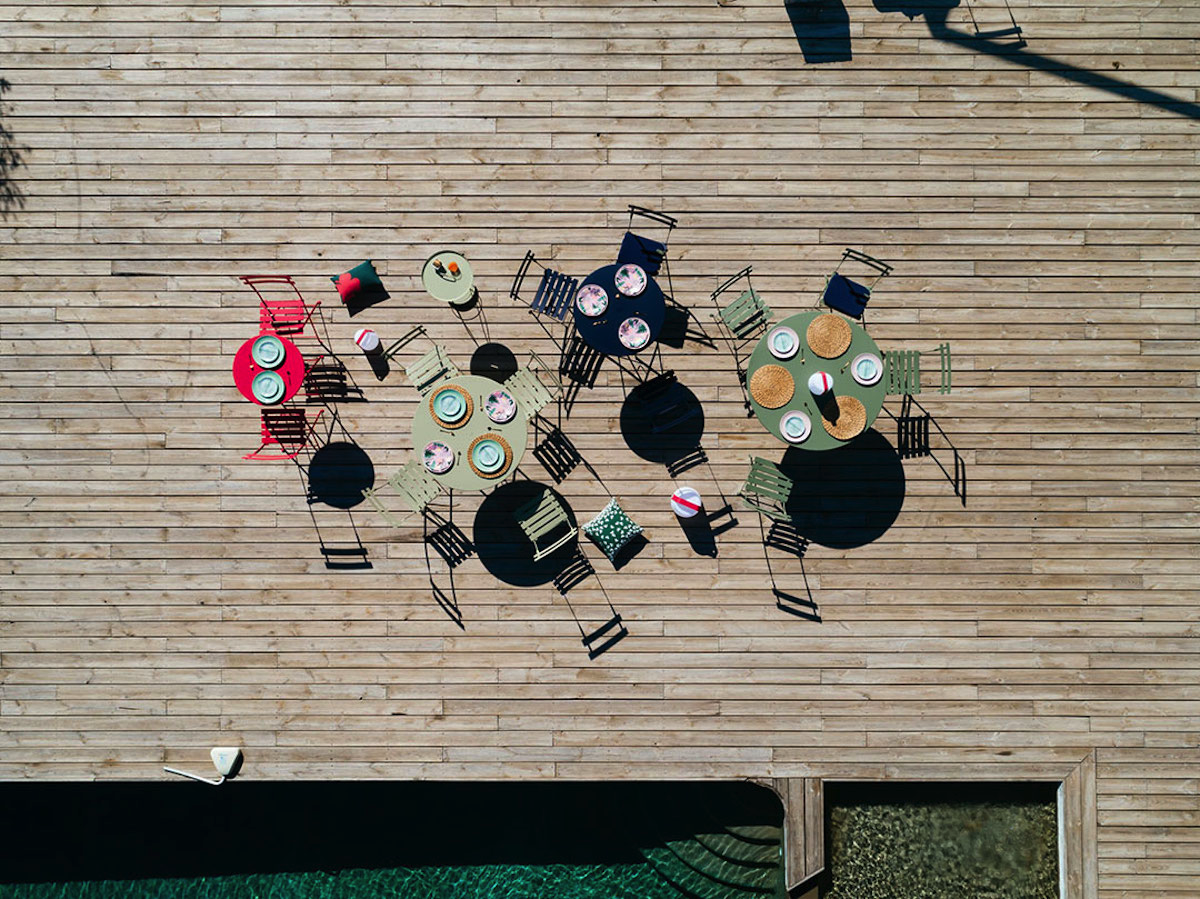 En 1889, Fermob dépose le brevet d’une gamme de mobilier pliant en acier laqué : la collection Bistro vient de naître. « La chaise et la table Bistro sont toujours fabriquées selon les modèles d’origine ! Cette collection pleine d’ingéniosité, de simplicité et de gaieté n’a rien perdu de son charme et de son authenticité.