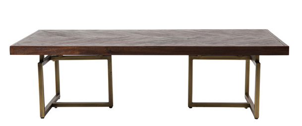 Plateau de table 4 cm en médium avec placage acaciaCadre en tube carré en acier 20mm couleur laiton antique Charge maximale 200 kg Dimensions en cm : L 120 x P 60 x 35