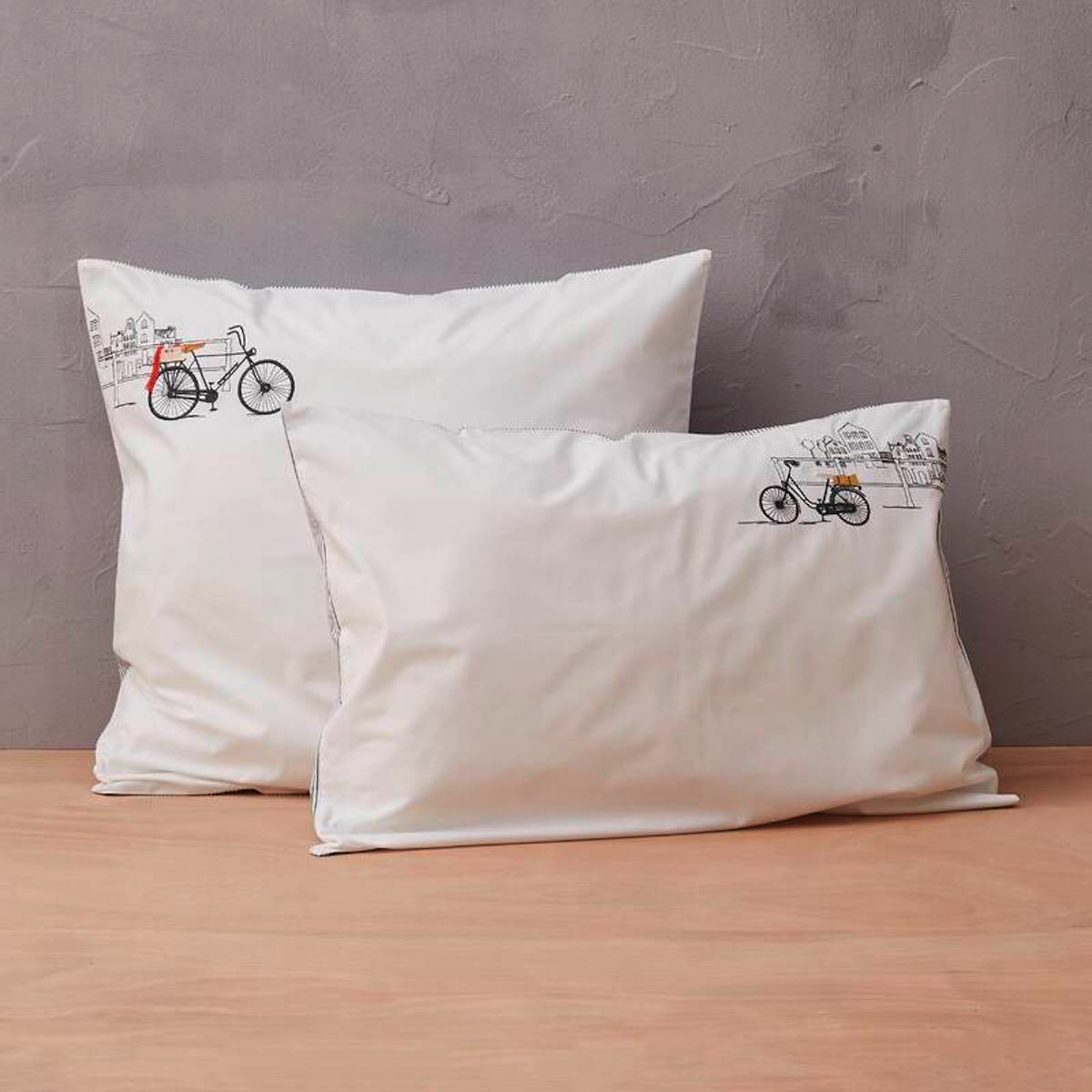Le revers à fines rayures bleu marine en fait une taie d'oreiller réversible.