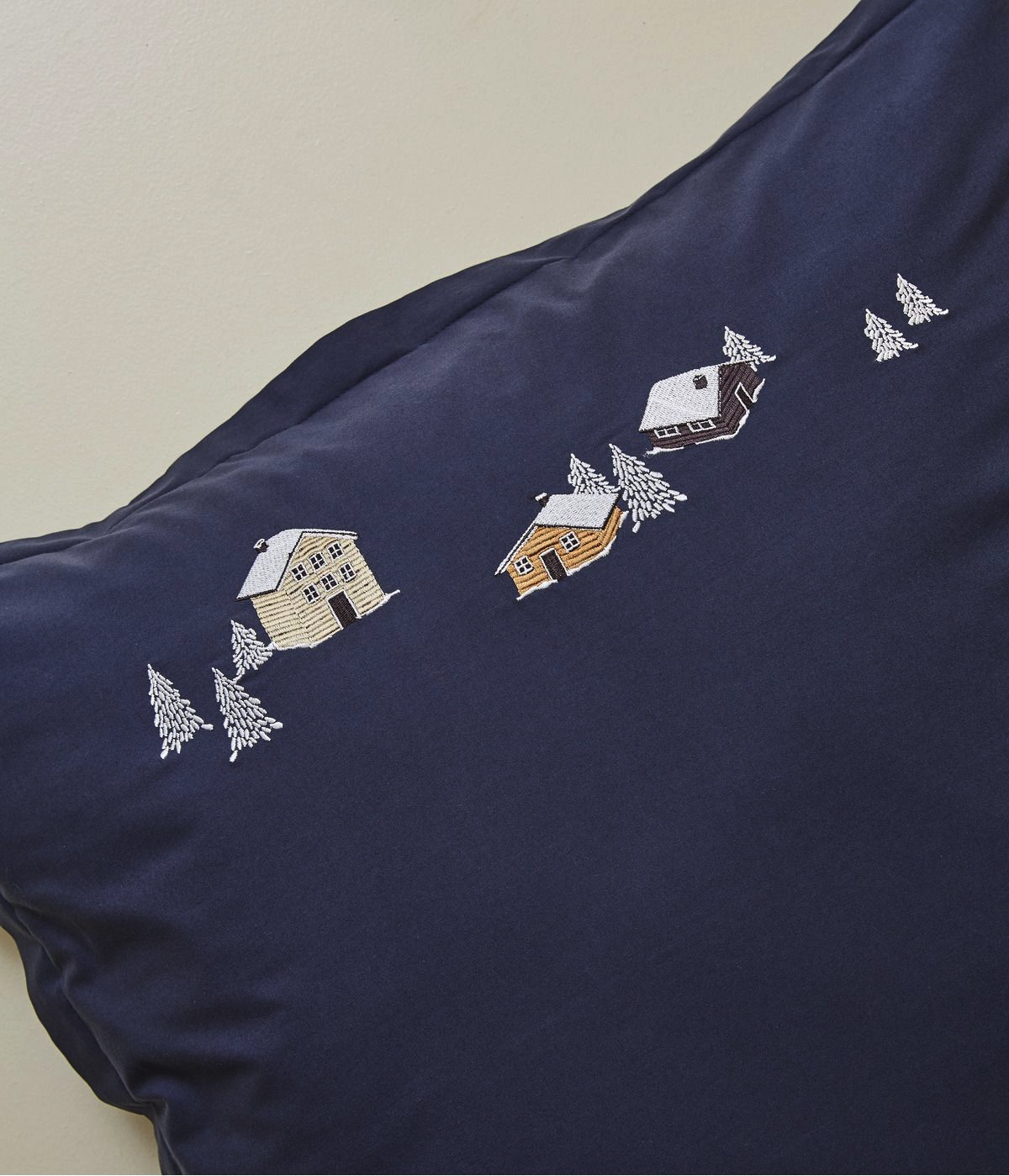 Taie d'oreiller brodée Au coeur de la vallée Bleu - Sylvie Thiriez