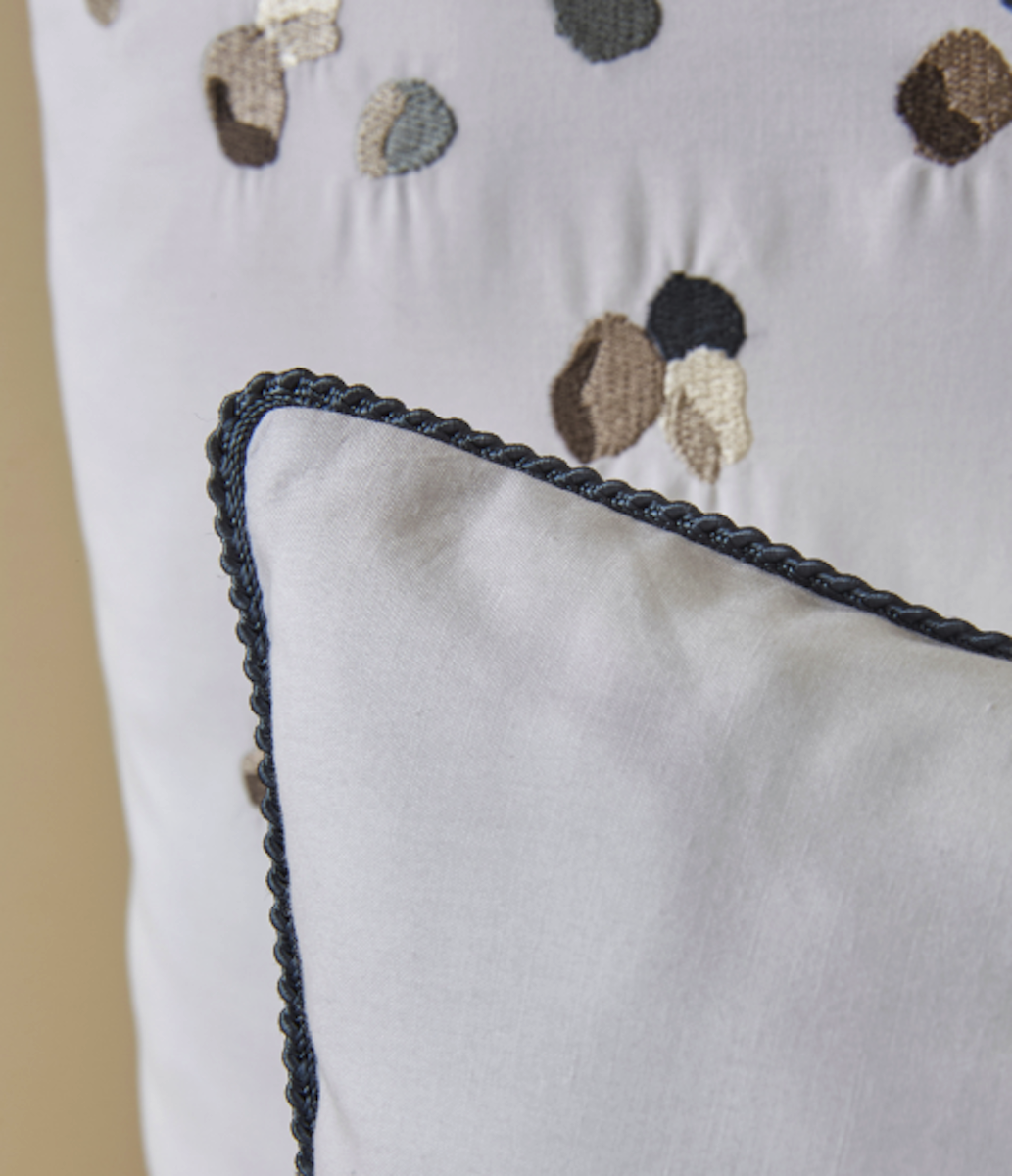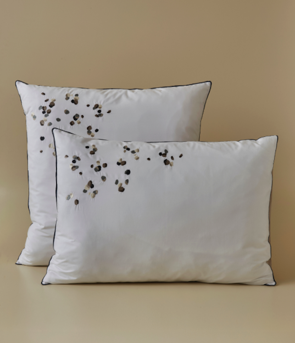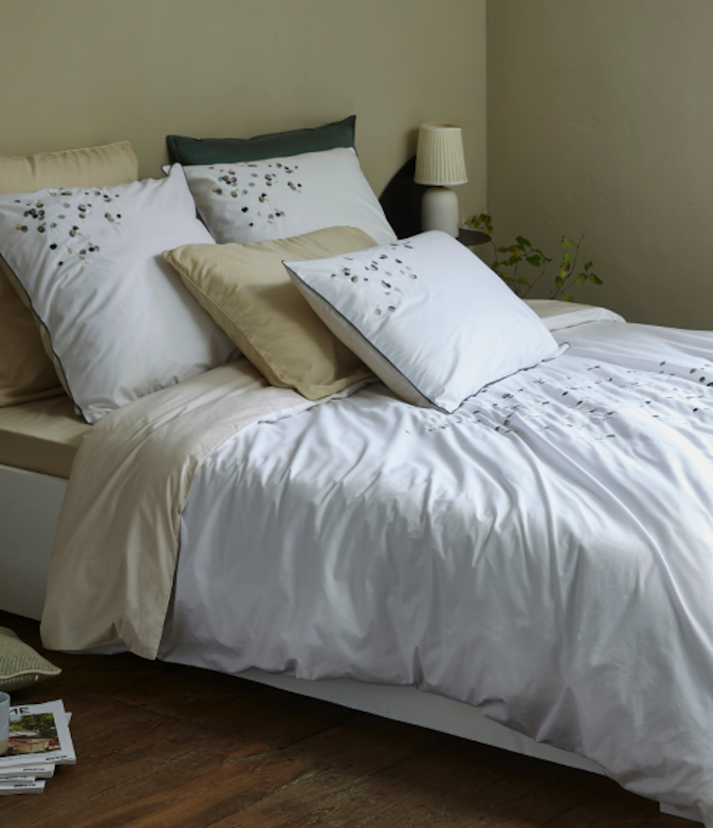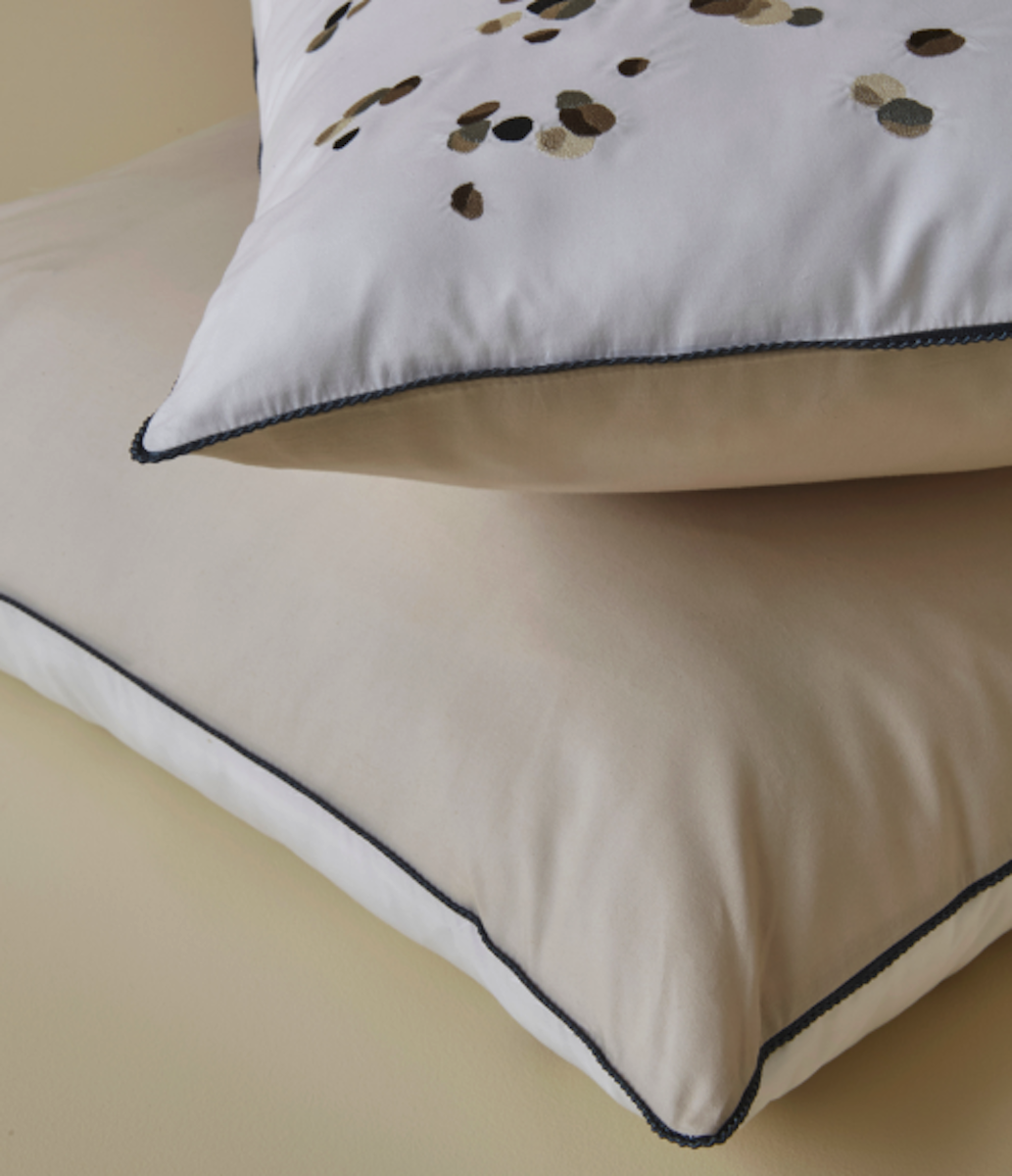 La taie d'oreiller Promesse sublime votre lit avec une élégance toute contemporaine. Sur une percale blanche irréprochable, de subtiles broderies déclinent de délicats tons beige et gris. Un galon raffiné souligne le contour de la taie, tandis qu'un fond beige doux au dos apporte un contraste délicat et soigné.