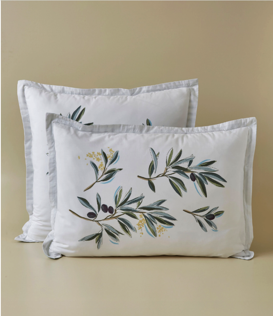Rêvez-vous d’une paisible sieste à l’ombre d’un olivier ? Nous vous proposons une taie d'oreiller ornée d’un délicat motif de branches d’olivier.