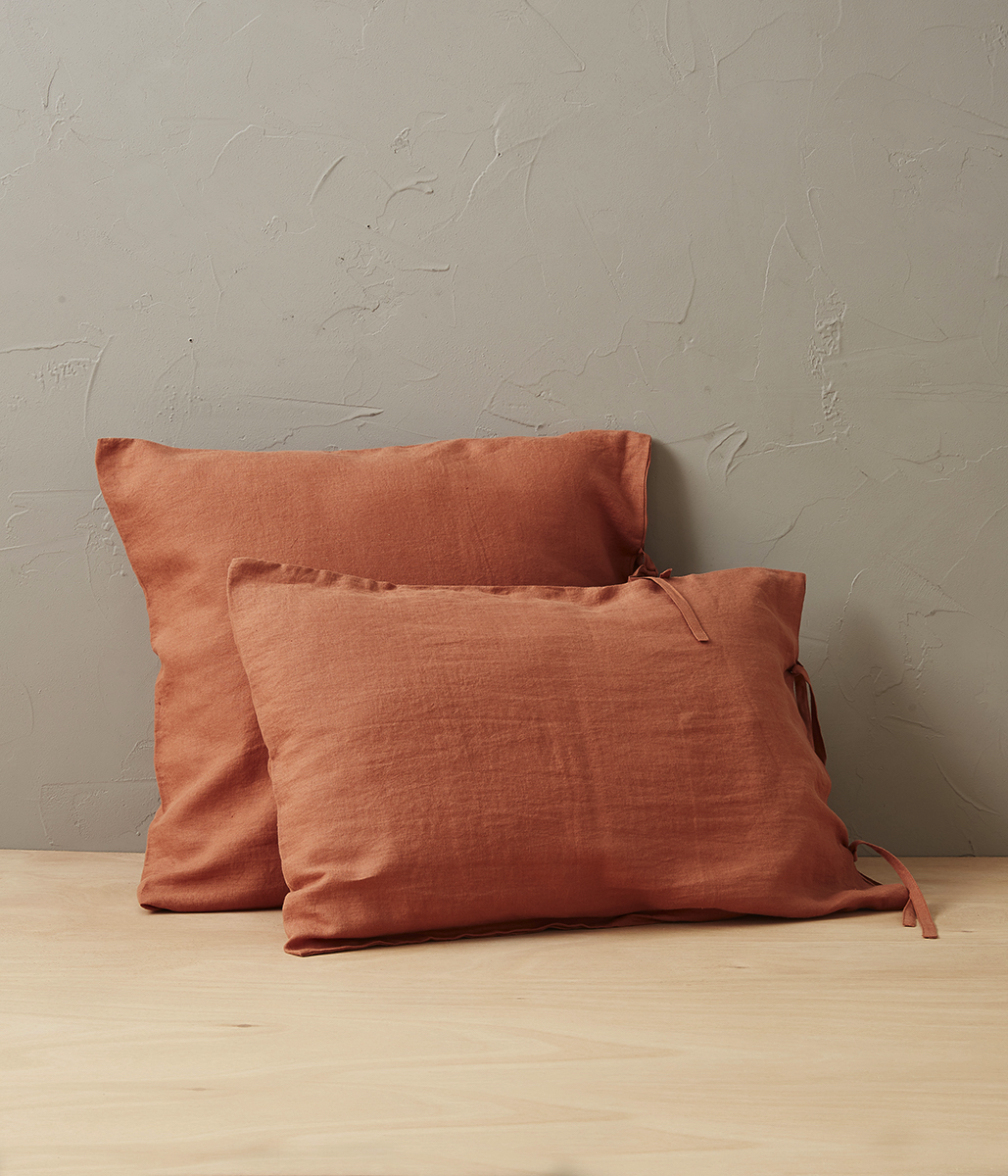 Taie d'oreiller Lin Stone Washed Orange Terracotta - Sylvie Thiriez