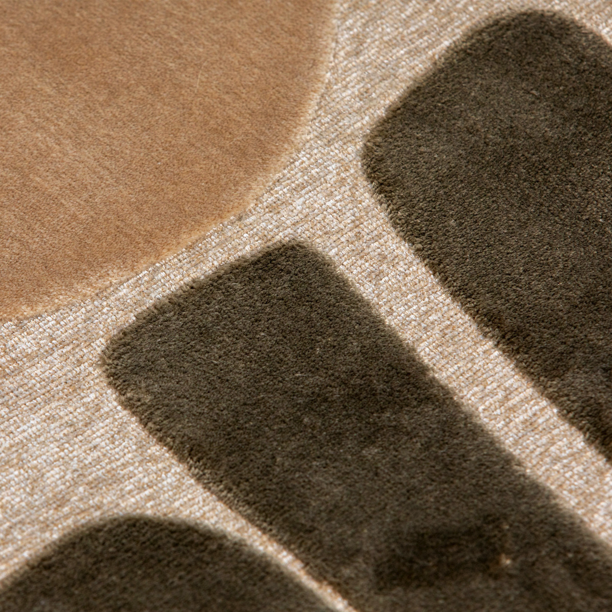 -Texture relief et profondeur, la construction du Tapis Nacala intègre différentes hauteurs de poils qui créent un relief subtil et tactile, accentuant les contrastes entre les différentes zones du motif. Les zones en relief captent la lumière différemment, renforçant l'effet visuel dynamique.