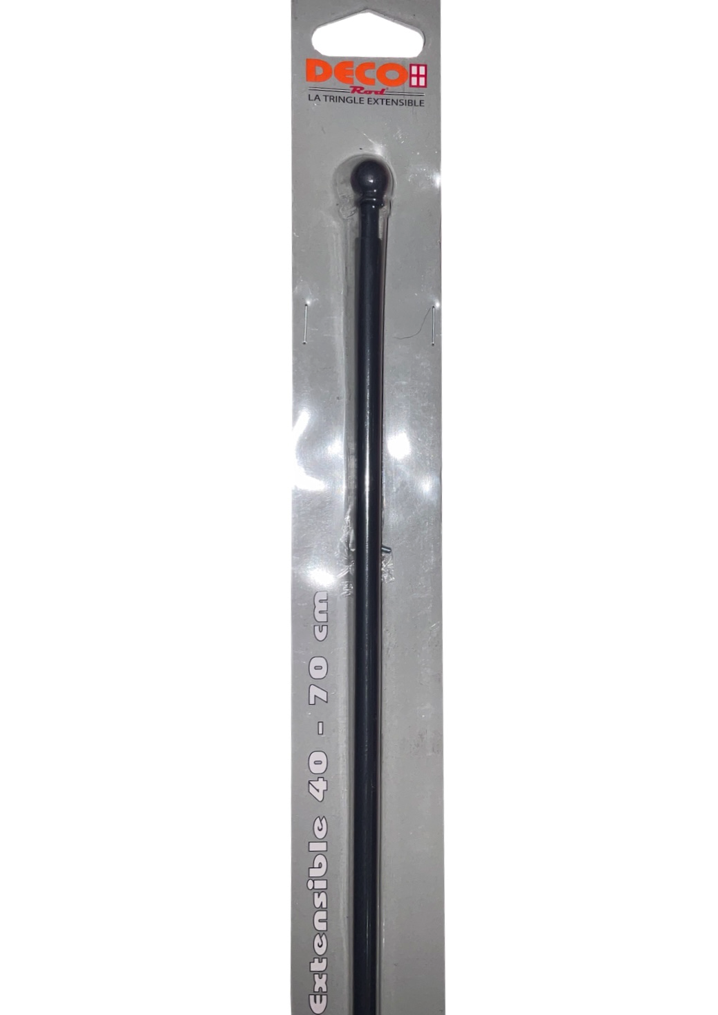 Simple et efficace !Accrochez votre brise bise avec cette tringle brise bise extensible ronde et de couleur graphite. Fournie avec 2 crochets en L.Cette tringle extensible au design simple saura s’adapter à votre fenêtre, il ne vous restera plus qu’à accrocher vos voilages ! Dimensions de la tringle :Longueur : 40 à 70 cmLargeur : 1 cmØ 8 mm